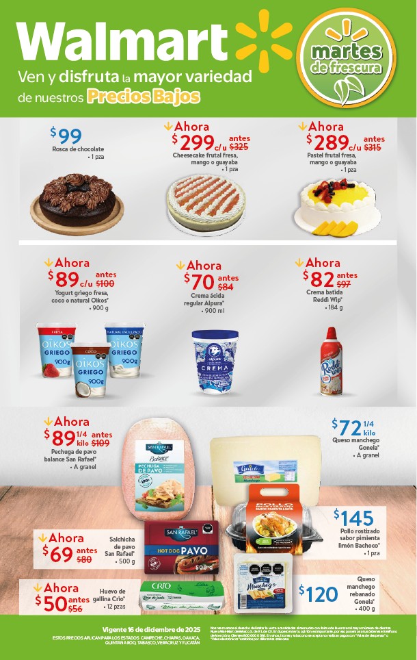 El Martes de Frescura Walmart de esta semana presenta las siguientes ofertas de frutas y verduras válidas para el día de mañana 16 de diciembre de 2025 en tiendas Walmart y Walmart Express de la república Mexicana.